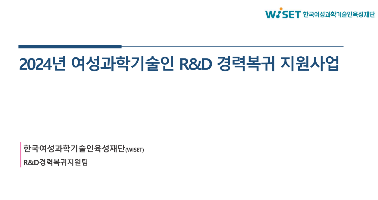 2024년 여성과학기술인 R&D 경력복귀 지원사업