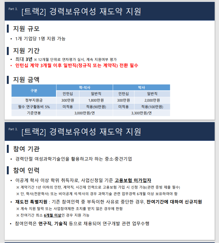 -(트랙2) 경력보유여성 재도약 지원 : 경력이 단절된 여성과학기술인을 인턴 3개월 채용 후 일반직 전환 시