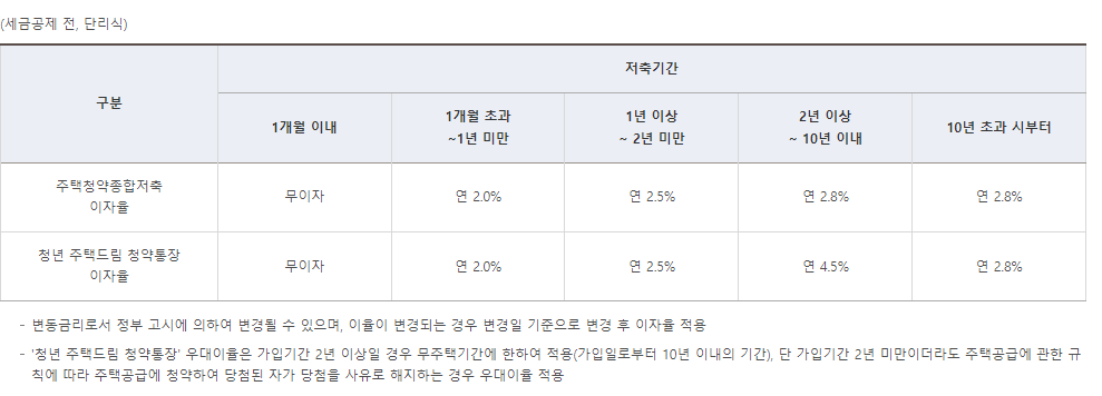 청약통장 해지시까지 유지가능하며, 이자율을 아래와 같습니다.